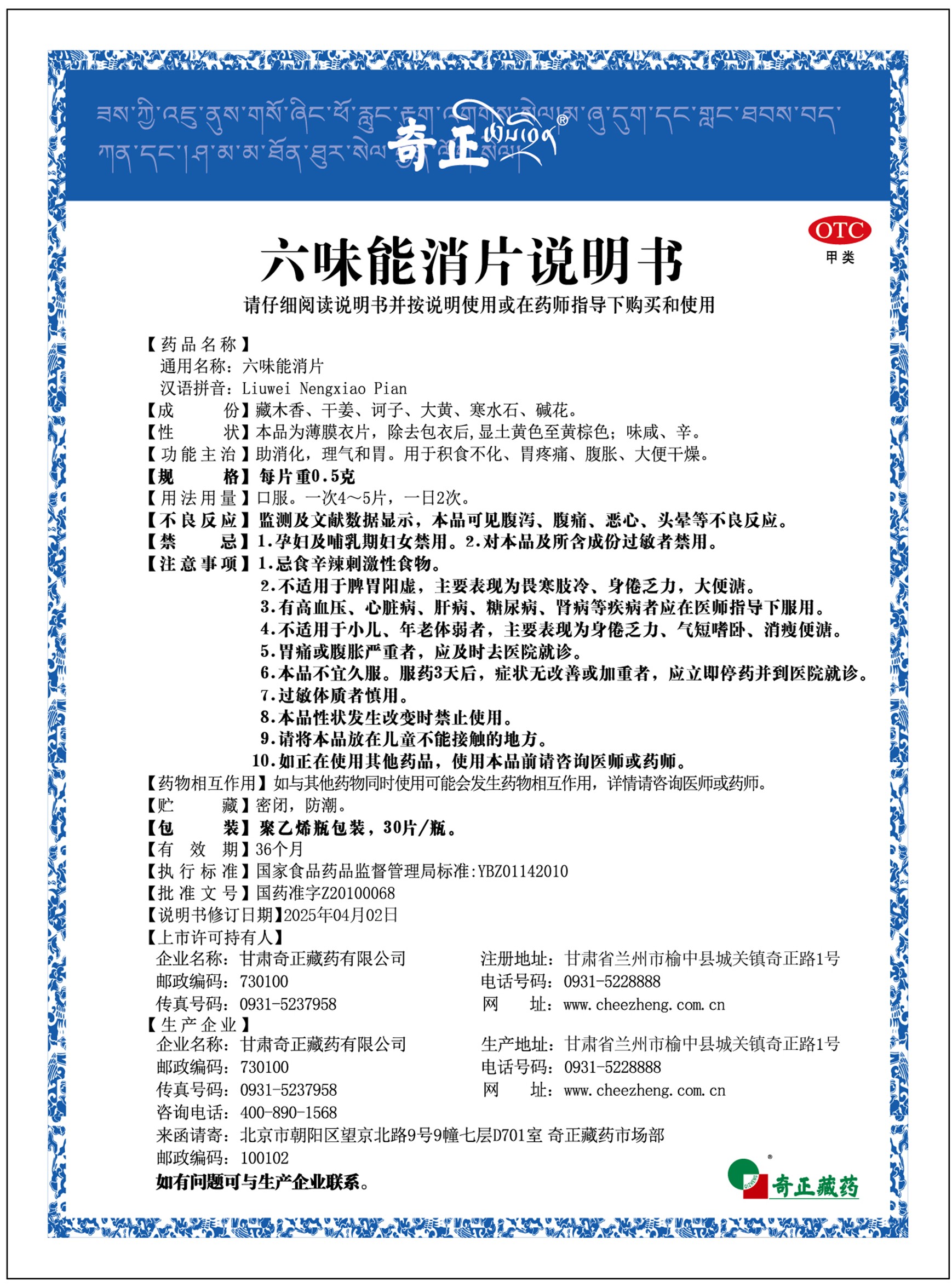 甘肅奇正藏藥有限公司按照六味能消片獲批的《國家藥品監(jiān)督管理局藥品補充申請批準(zhǔn)通知書》(編號:2024B06184)內(nèi)容,對六味能消片藥品說明書中的【不良反應(yīng)】、【禁忌】和【注意事項】進行了修訂及備案,現(xiàn)將新版說明書予以發(fā)布,如您需要更為詳細的信息或有特定的問題,可以聯(lián)系客服400-890-1568或撥打企業(yè)電話:0931-5228888。