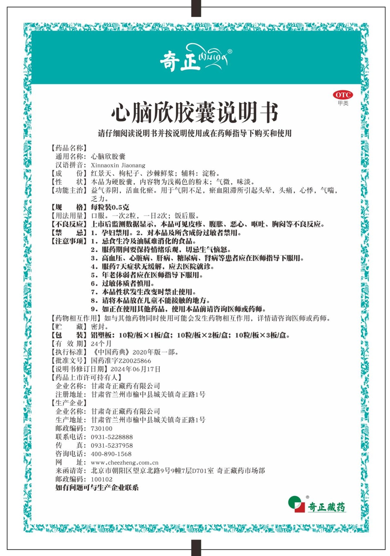 甘肅奇正藏藥有限公司按照心腦欣膠囊獲批的《國家藥品監(jiān)督管理局藥品補充申請批準通知書》(編號:2024B00599)內(nèi)容,對心腦欣膠囊藥品說明書中的【不良反應(yīng)】、【禁忌】和【注意事項】進行了修訂及備案,現(xiàn)將新版說明書予以發(fā)布,如您需要更為詳細的信息或有特定的問題,可以聯(lián)系客服400-890-1568或撥打企業(yè)電話:0931-5228888。